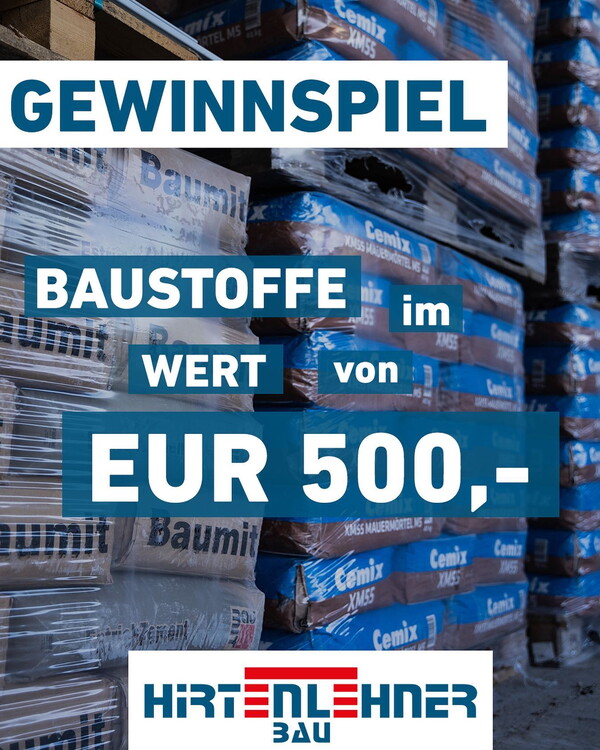 Gewinne einen Gutschein im Wert von EUR 500,- (inkl. Mwst) für Baustoffe deiner Wahl.
