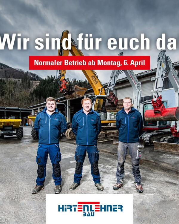 Wir sind für euch da und haben ab Montag, den 6. April wieder geöffnet! 💪 Mit vollem Einsatz auf den Baustellen, im Büro und im Lager 🏗🧱